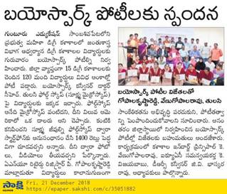 BIO-SPARK COMPETITIONS AT GOVT. COLLEGE FOR WOMEN, GUNTUR – 20-12-2018